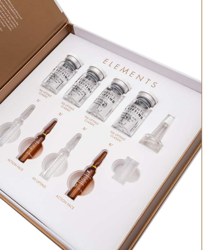 KIT COMPOSTO POR 4 VIAIS DE ACIDO HIALURONICO +2 AMPOLAS DE ACTION FACE E 2 AMPOLAS DE HV LIFTING